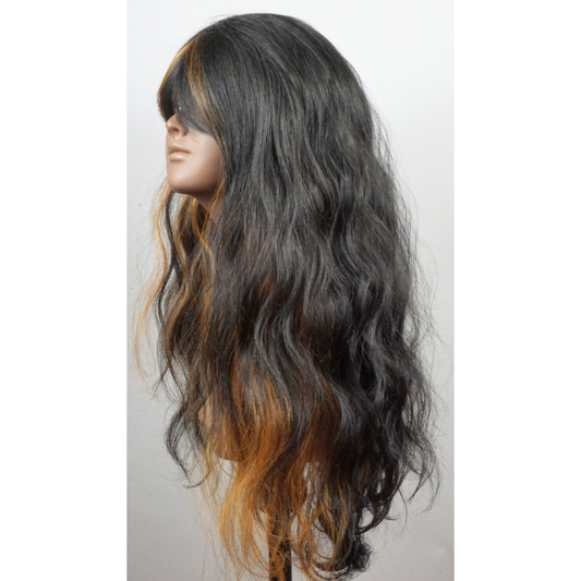Langhaar-Perücke "Wave" - Schwarz mit Highlights