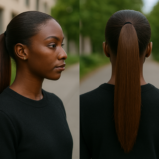 Extra lange glatte Ponytail Haarverlängerung in Schwarz