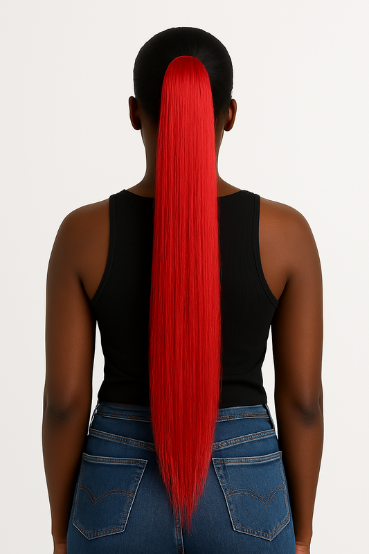 Extra lange glatte Ponytail Haarverlängerung in Rot