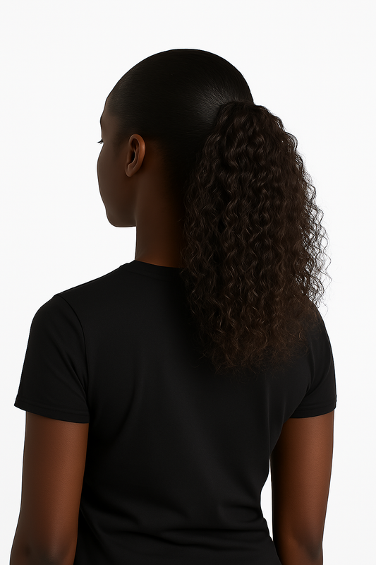 Lange lockte Ponytail Haarverlängerung in Schwarz